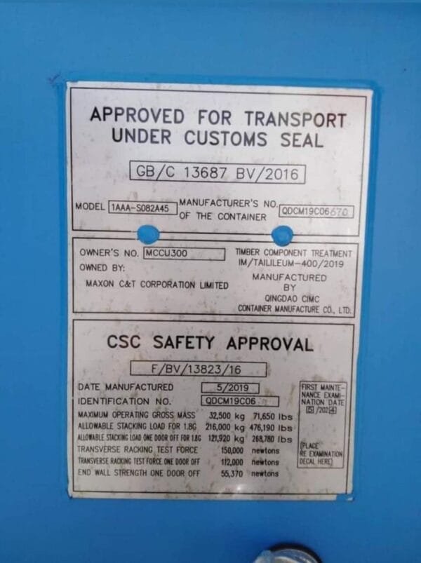 External Dimensions (L × W × H): 40′ × 8′ × 8′6″ (12.19m × 2.44m × 2.59m)